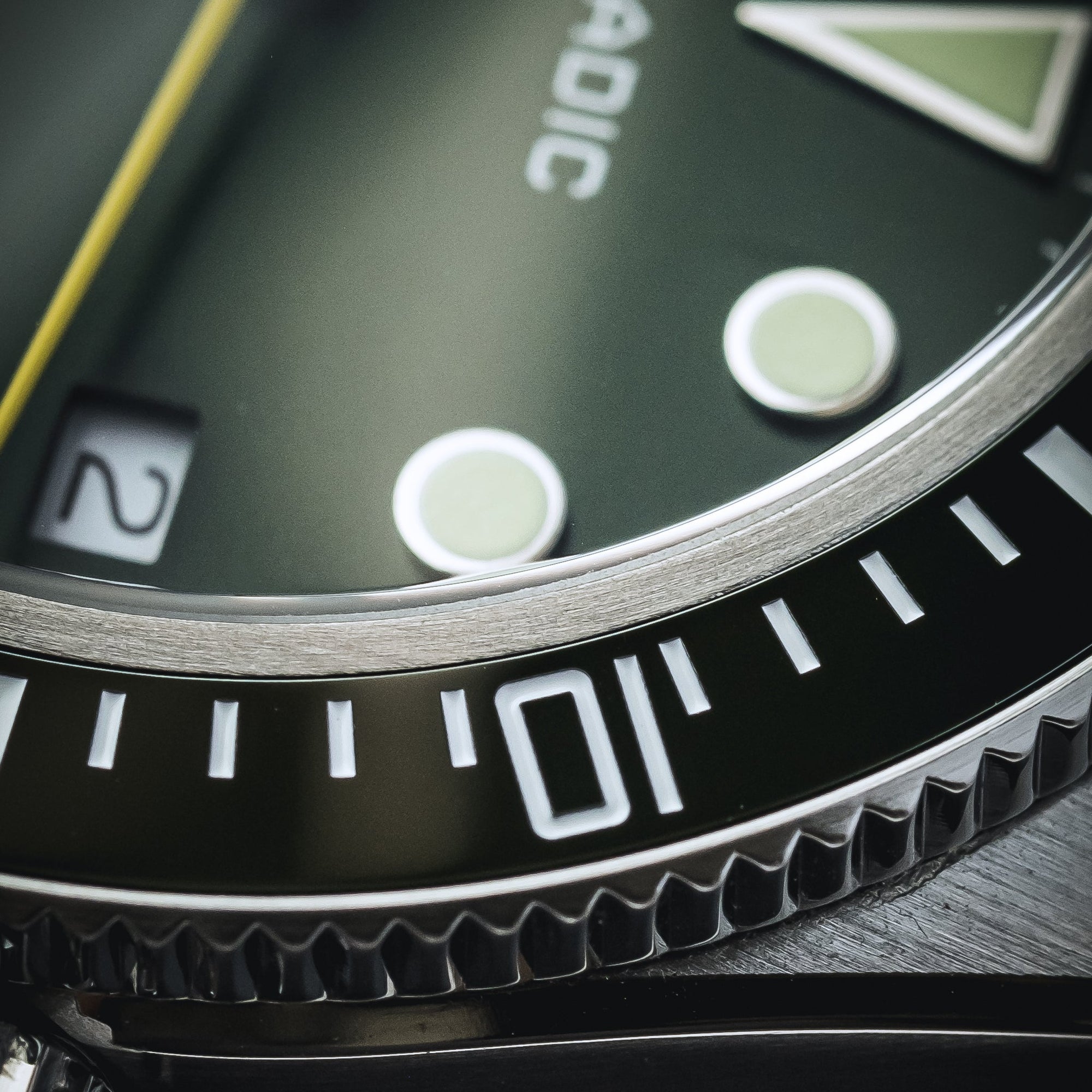 The Bezel - The unidirectional timing bezel is built as a real tool: clear markings and enough grip to turn with cold, wet hands. It’s there to measure moments that matter, not just to look the part.