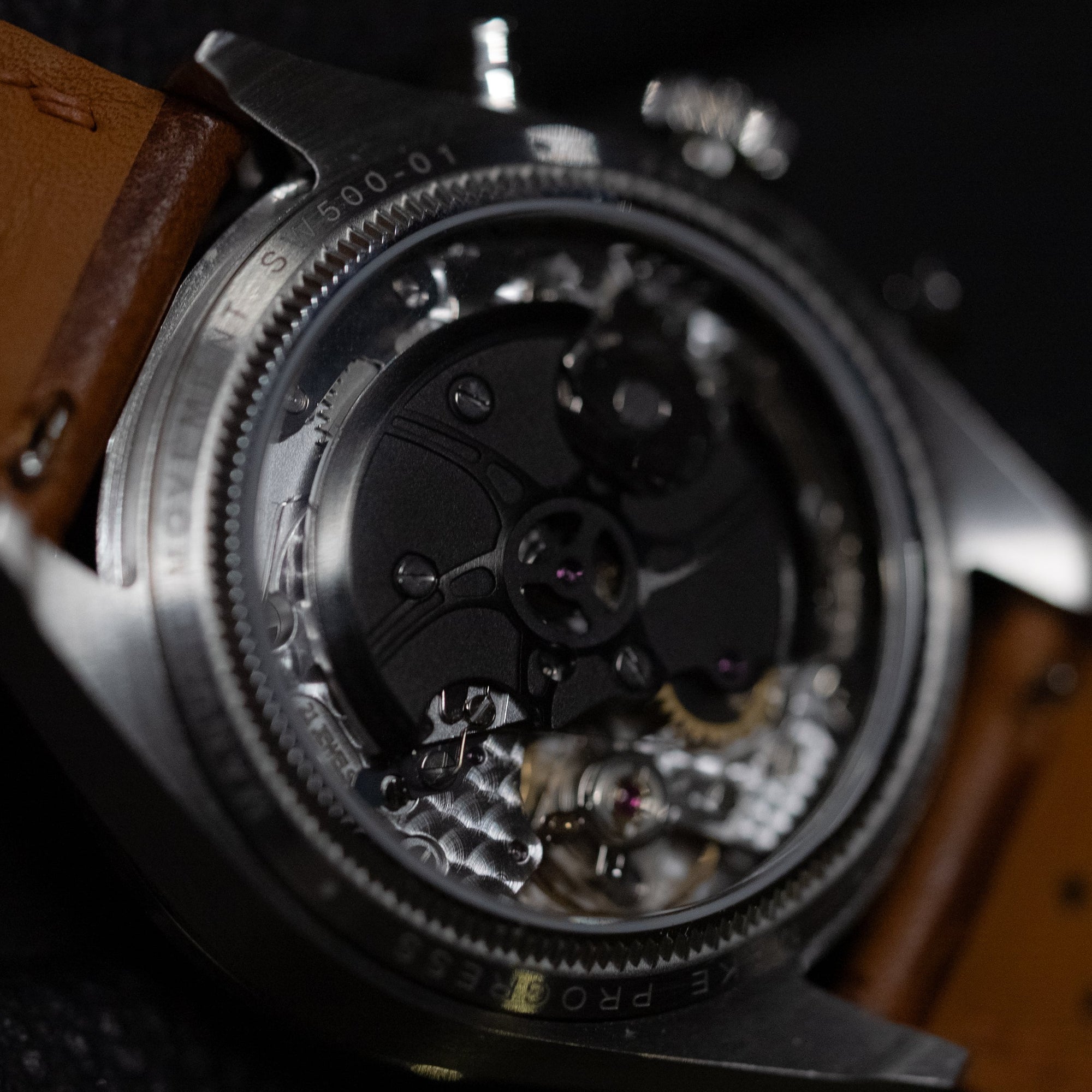 The Movement - At its heart beats the Sellita SW500 M-a - a Swiss chronograph calibre renowned for reliability, accuracy, and refined mechanical craftsmanship.