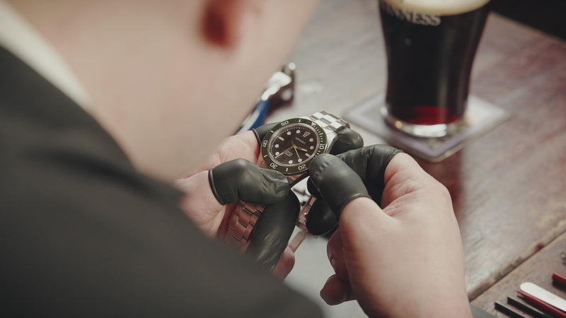 It beats away at 28,800 vibrations per hour, with 41 hours of power reserve on a full wind, keeping time steady whether you’re at a desk in Belfast or waist-deep in cold Atlantic water. With 26 jewels, hacking seconds, hand-winding and a quickset date, it’s built for real-world use