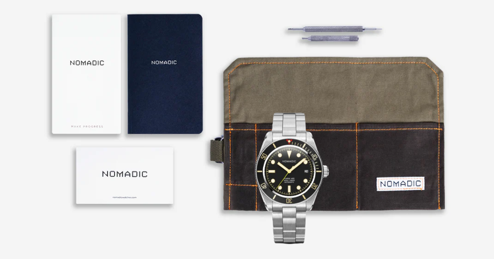 Precision engineered and handbuilt by skilled technicians, every Nomadic watch has a screw-down crown and case back to guarantee saltwater resistance up to 660ft