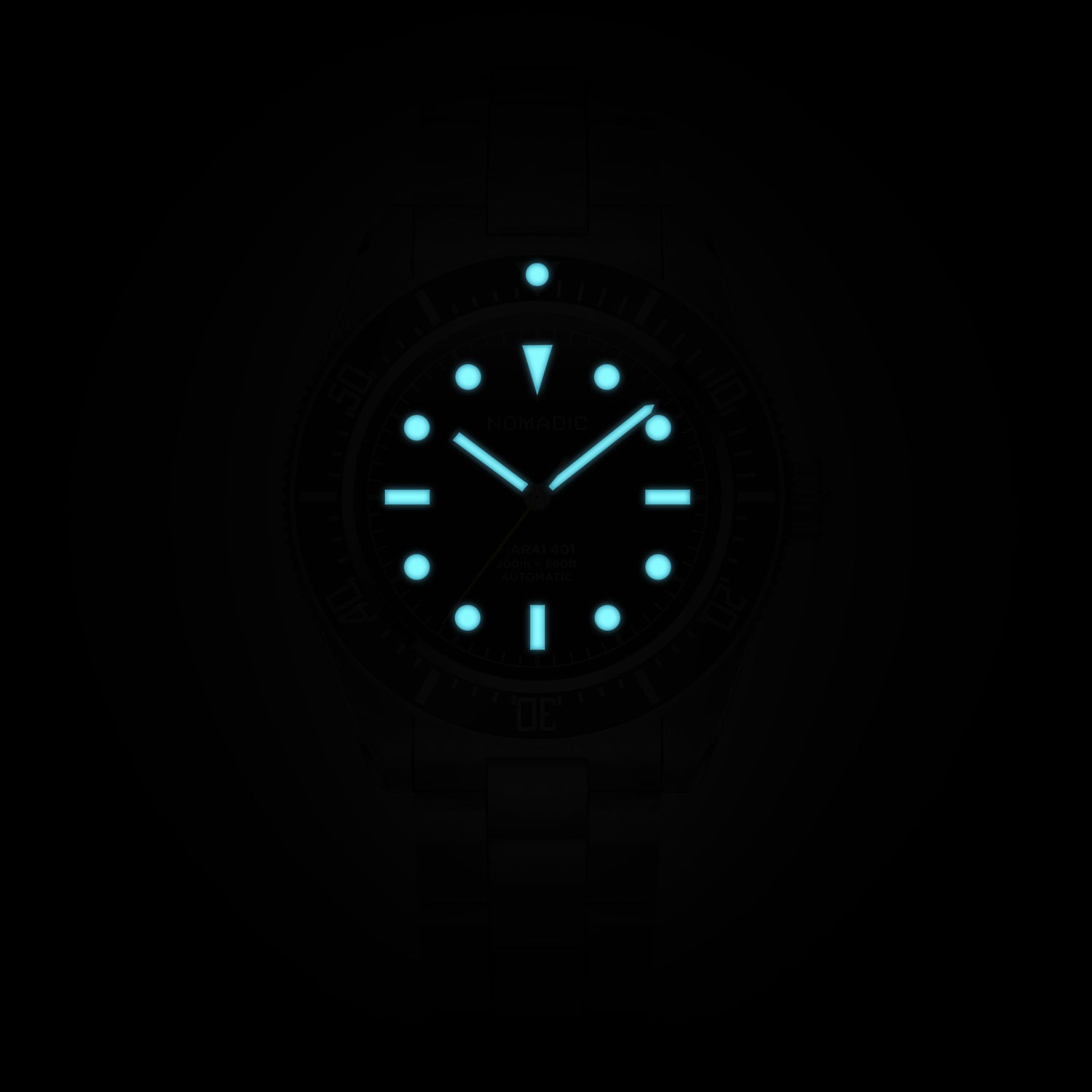 Precision engineered and handbuilt by skilled technicians, every Nomadic watch has a screw-down crown and case back to guarantee saltwater resistance up to 660ft.